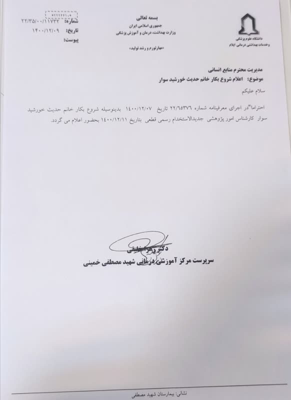 سر کار خانم حدیث خورشیدسوار(ابلاغ)